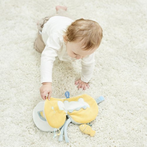 Rozkošná knížka aktivit je dokonalým společníkem na hraní pro vaše miminko při všech jeho dobrodružstvích. Měkká plyšová knížka nabízí spoustu detailů pro uchopení a dotek a má dokonalý tvar pro malé ručičky a prštěky. Zrcátko a aktivity, které můžete objevit při otáčení stránek, poskytují vašemu děťátku další zábavu.