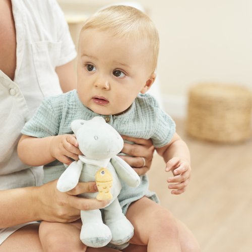 Tento hudební plyšák si podmaní srdce vašeho děťátka. S láskou navržený hudební plyšák nabízí řadu možností uchopení, čímž podporuje rozvoj hmatových a motorických schopností. Extra měkký materiál poskytuje pocit bezpečí a jistoty v prvních týdnech a měsících. S jemnou ukolébavkou „La-Le-Lu“ je hudební hračka dokonalým společníkem pro sladké sny.