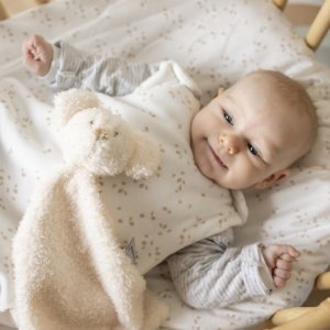 Náš mazlíček je nerozlučný kamarád vašeho miminka už od narození – přináší pocit jistoty, klidu a pohodlí v každé situaci. Je ideální k mazlení v postýlce, uklidnění na cestách či hraní v ohrádce. Měkoučká dečka s milým motivem nabízí řadu úchopových možností, které podporují rozvoj smyslů a jemné motoriky. Děťátko může pohodlně chytat hlavičku zvířátka nebo zajímavé visačky po stranách. Praktické poutko umožňuje připevnit dudlík, aby byl vždy po ruce.