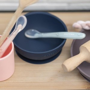 Dvoudílný jídelní set od Nattou z měkkého silikonu je velmi praktický, snadno uchopitelný a protiskluzový. Set obsahuje misku s přísavkou a lžičku. Zaoblené vnitřní hrany misky usnadňují nabírání potravin dětičkám a jejich rodičům.