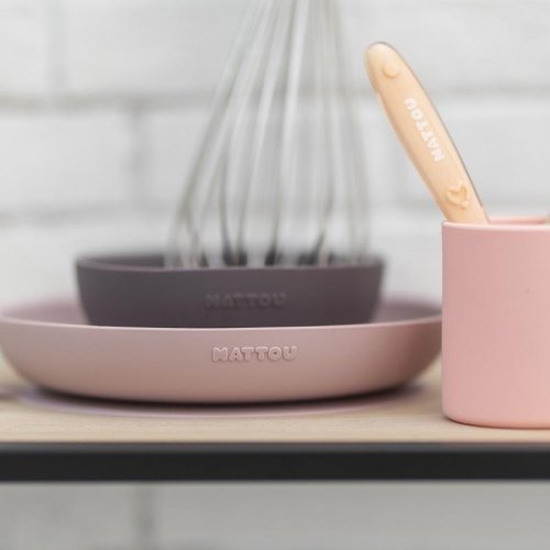 Čtyřdílný jídelní set od Nattou z měkkého silikonu je velmi praktický, snadno uchopitelný a protiskluzový. Set obsahuje talířek a misku s přísavkou, hrnek a lžičku. Zaoblené vnitřní hrany misky a talířku usnadňují nabírání potravin dětičkám a jejich rodičům.