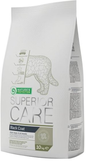 Nature's Protection Superior Care Black Coat Dog Adult All Breed - kompletní krmivo pro dospělé psy všech plemen s černou srstí starších více než 1 rok. Jedinečná receptura byla vyvinuta speciálně pro potřeby psích plemen s černou srstí. Vyvážený obsah aminokyselin a zvýšené množství biotinu pomáhá chránit a vylepšovat černou barvu srsti. Snadno stravitelná receptura díky bílkovinám z drůbežího masa a lososa. Neobsahuje pšeničný lepek ani kukuřici a díky tomu je vhodná i pro psy s citlivým trávicím systémem. Složení: Rýže, drůbeží masová moučka (kuřecí maso 83 %, krůtí maso 12 %, kachní maso 5 %), batáty (sladké brambory), moučka z lososa, ječmen, drůbeží tuk, cukrovkové řízky, pivovarské kvasnice, hrách, lněné semínko, hydrolyzovaná kuřecí játra, dynamicky mikronizovaný klinoptilolit (1 %), monokalcium-fosfát, výtažek z čekanky, fruktooligosacharidy (FOS), extrakt juky. Analytické složky: Hrubý protein 26 %, hrubé oleje a tuky 13 %, hrubý popel 9 %, hrubá vláknina 3,5 %, vápník 1,2 %, fosfor 0,9 %, omega 3 mastné kyseliny 0,46 %, omega 6 mastné kyseliny 2,16 %. Doplňkové látky: Nutriční doplňkové látky/1 kg:vitamin A 18000 m.j., vitamin D3 1500 m.j., vitamin E 530 mg, kyselina listová 4 mg, biotin 2 mg, niacin 75 mg, vitamin B6 13,4 mg, vitamin B1 16,3 mg, vitamin B12 0,07 mg, cholinchlorid 1480 mg, síran železnatý 50 mg, jodičnan vápenatý 1,5 mg, síran měďnatý 7 mg, síran manganatý 40 mg, síran zinečnatý 150 mg, seleničitan sodný 0,1 mg. Technologické doplňkové látky: výtažek z rozmarýnu, tokoferolové extrakty z rostlinných olejů. Dávkování: