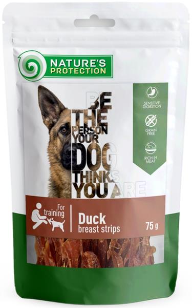 Doplňkové krmivo pro psy Nature's Protection Dog Snack Duck Breast Strips – proužky z kachních prsou. Hlavní přednosti: