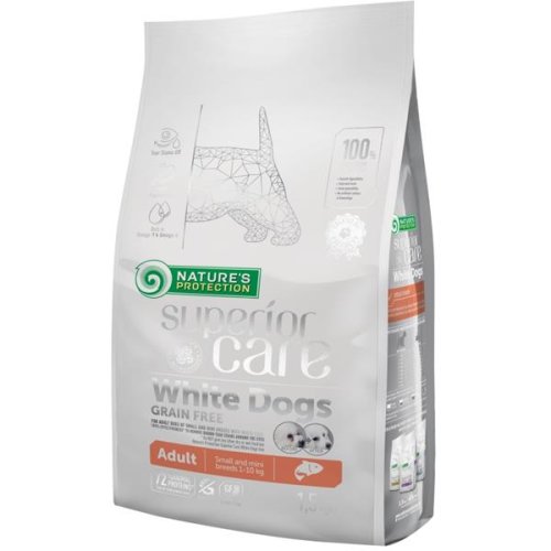 Nature's Protection Superior Care Dog Dry White Dospělí psi malých plemen bez obilovin s lososem 1,5 kg