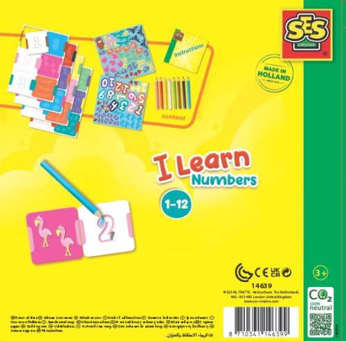 Naučit se počítat ještě nikdy nebylo tak zábavné! Hravou formou se naučíte počítat od jedné do dvanácti. Spočítejte zvířátka na kartičkách a nalepte samolepky na správná místa. Najděte kartu se správným číslem a umístěte karty ve správném pořadí. Počítal jsi správně? Barevné testovací oblasti se budou shodovat. Čísla si můžete vybarvit, abyste se naučili, jak se píší. Obsahuje: 24 karet s čísly (1-12) a figurkami, 8 pastelek, samolepky, návod. Věk: 3+