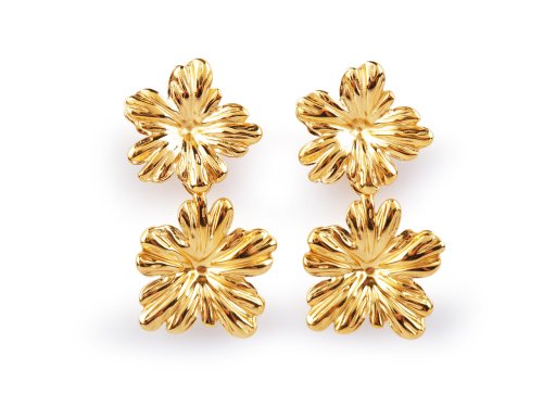 Náušnice se zavěšenými květy představují elegantní doplněk, který zaujme svým jedinečným designem. Jsou vyrobené z kvalitní nerezové oceli. Horní květ je pevný, dolní je zavěšený, při pohybu hlavou se pohupuje. Náušnice využijete na každodenní nošení i ke slavnostním událostem, působí romanticky. Puzeta je s kovovou zarážkou proti vypadnutí.