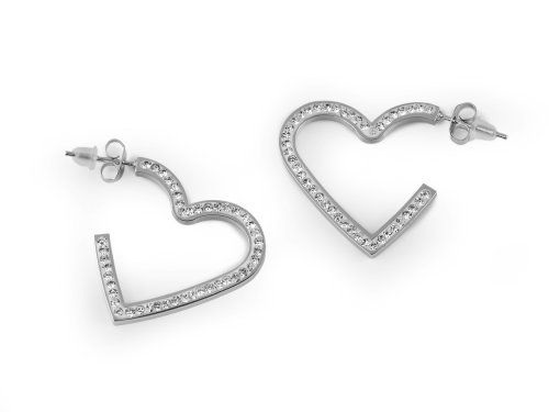 Náušnice srdce z kvalitní nerezové oceli jsou osázené broušenými kamínky s oslnivým třpytem.
