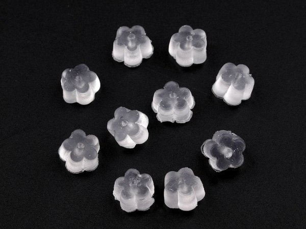 [Praktická silikonová zarážka ve tvaru květinky se používá na všechny otevřené konce náušnic jako zapínání. Využijete ji na puzetách i afroháčcích. Spolehlivě zabrání, aby náušnice nevyklouzla z ušního lalůčku.] 5 g = cca 115 ks 30 g = cca 670 ks 420 g = cca 7170 ks