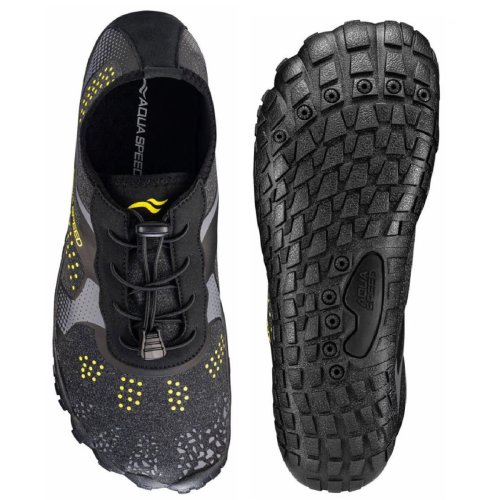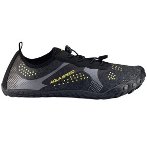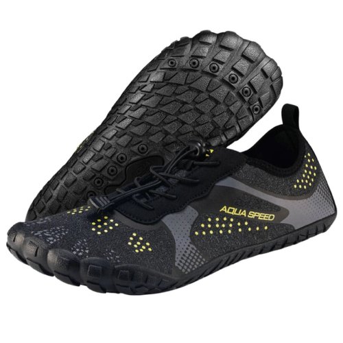 Tyto multifunkční boty AquaSpeed Nautilus byly vytvořeny pro vodní sporty i klasické sporty. Využijete je při plavání, windsurfingu, šnorchlování, na plážové sporty, jógu, cyklistiku, do posilovny apod. Svršek bot je vyrobený z pružného, prodyšného, rychleschnoucího a ultralehkého materiálu, který zajišťuje dostatečnou ventilaci chodidla a pohodlí při používání. Podešev z vysoce kvalitní, lehké a velmi pružné pryže poskytuje trakci a ochranu na různých površích. Ocelová síťovina uvnitř podešve dodatečně chrání chodidlo před pořezáním (ostré kameny, hroty mořského ježka atd.). Otvory v podrážce odvádějí vodu z boty. Částečně profilovaná stélka z lehké a pružné pěny dobře tlumí chodidlo pro větší komfort při nošení. Její struktura umožňuje správné větrání a odvod vody. Elastické tkaničky upevňujete jednoduše pomocí nastavovacího cvočku. Použité materiály a technologie výroby zaručují pohodlí a díky atraktivnímu designu boty vypadají na noze skvěle. Velikosti odpovídají velikostem EU. Tabulku naleznete v obrázcích. Uvedené hodnoty jsou pouze orientační a s ohledem na konkrétní tvar nohy se může vhodná velikost lišit!