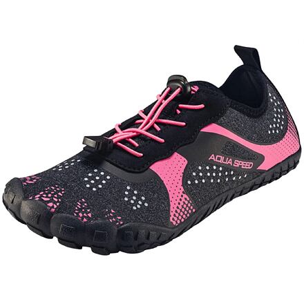 Tyto multifunkční boty AquaSpeed Nautilus byly vytvořeny pro vodní sporty i klasické sporty. Využijete je při plavání, windsurfingu, šnorchlování, na plážové sporty, jógu, cyklistiku, do posilovny apod. Svršek bot je vyrobený z pružného, prodyšného, rychleschnoucího a ultralehkého materiálu, který zajišťuje dostatečnou ventilaci chodidla a pohodlí při používání. Podešev z vysoce kvalitní, lehké a velmi pružné pryže poskytuje trakci a ochranu na různých površích. Ocelová síťovina uvnitř podešve dodatečně chrání chodidlo před pořezáním (ostré kameny, hroty mořského ježka atd.). Otvory v podrážce odvádějí vodu z boty. Částečně profilovaná stélka z lehké a pružné pěny dobře tlumí chodidlo pro větší komfort při nošení. Její struktura umožňuje správné větrání a odvod vody. Elastické tkaničky upevňujete jednoduše pomocí nastavovacího cvočku. Použité materiály a technologie výroby zaručují pohodlí a díky atraktivnímu designu boty vypadají na noze skvěle. Velikosti odpovídají velikostem EU. Tabulku naleznete v obrázcích. Uvedené hodnoty jsou pouze orientační a s ohledem na konkrétní tvar nohy se může vhodná velikost lišit!