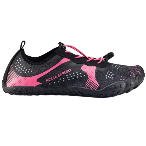 Tyto multifunkční boty AquaSpeed Nautilus byly vytvořeny pro vodní sporty i klasické sporty. Využijete je při plavání, windsurfingu, šnorchlování, na plážové sporty, jógu, cyklistiku, do posilovny apod. Svršek bot je vyrobený z pružného, prodyšného, rychleschnoucího a ultralehkého materiálu, který zajišťuje dostatečnou ventilaci chodidla a pohodlí při používání. Podešev z vysoce kvalitní, lehké a velmi pružné pryže poskytuje trakci a ochranu na různých površích. Ocelová síťovina uvnitř podešve dodatečně chrání chodidlo před pořezáním (ostré kameny, hroty mořského ježka atd.). Otvory v podrážce odvádějí vodu z boty. Částečně profilovaná stélka z lehké a pružné pěny dobře tlumí chodidlo pro větší komfort při nošení. Její struktura umožňuje správné větrání a odvod vody. Elastické tkaničky upevňujete jednoduše pomocí nastavovacího cvočku. Použité materiály a technologie výroby zaručují pohodlí a díky atraktivnímu designu boty vypadají na noze skvěle. Velikosti odpovídají velikostem EU. Tabulku naleznete v obrázcích. Uvedené hodnoty jsou pouze orientační a s ohledem na konkrétní tvar nohy se může vhodná velikost lišit!