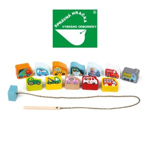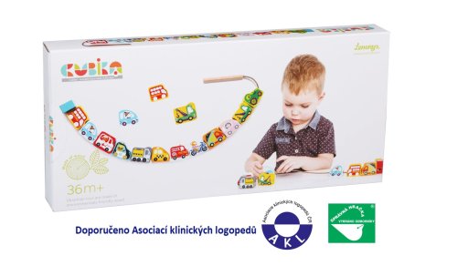 CUBIKA je nová značka dřevěných hraček vyrobených pouze z ekologicky pěstovaného dřeva s velmi precizním opracováním a líbivým designem. Navlékací dopravní prostředky jsou ideální hrou pro procvičení jemné motoriky, trpělivosti a paměti. Sada nabízí 12 dřevěných navlékacích prvků s dopravní tematikou, jednu 45 cm dlouhou tkaničku s dřevěným kolíčkem na prostrkování na jedné straně a zarážkou na druhé straně a 8 předloh s různě seřazenými tematickými prvky, podle kterých děti jednotlivé dílky navlékají. Zdatnější hráči si pak mohou předlohu jen prohlédnout a zkusit navlékat zpaměti a vytvářet si tak svůj vlatní příběh. Sortiment hraček značky CUBIKA pomáhá dětem rozvíjet především senzomotorické schopnosti a dovednosti, logické myšlení, kreativitu, představivost a různé poznávací znalosti. Hračky jsou vyrobeny z nejkvalitnějšího javoru a buku a k barvení se používají též vysoce kvalitní barvy na vodní bázi, které jsou naprosto bezpečné pro děti a nemají žádný zápach. Všechny výrobky této značky mají německý certifikát TÜV a jsou vyrobeny dle evropské normy pro bezpečnost hraček EN 71. Nevhodné pro děti do 3 let. Vyrobeno v Evropě.