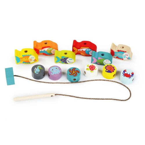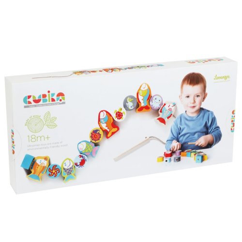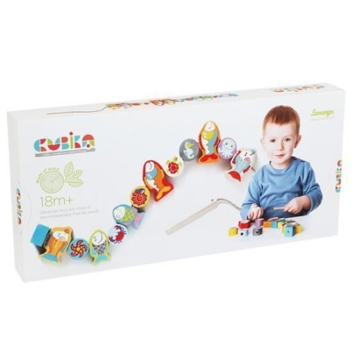 CUBIKA je nová značka dřevěných hraček vyrobených pouze z ekologicky pěstovaného dřeva s velmi precizním opracováním a líbivým designem. Navlékací ryby a mořští živočichové jsou ideální hrou pro procvičení jemné motoriky, trpělivosti a paměti. Sada nabízí 12 dřevěných navlékacích prvků s mořskou tematikou, jednu tkaničku s dřevěným kolíčkem na prostrkování na jedné straně a zarážkou na druhé straně a 8 předloh s různě seřazenými tematickými prvky, podle kterých děti jednotlivé dílky navlékají. Zdatnější hráči si pak mohou předlohu jen prohlédnout a zkusit navlékat zpaměti. Sortiment hraček značky CUBIKA pomáhá dětem rozvíjet především senzomotorické schopnosti a dovednosti, logické myšlení, kreativitu, představivost a různé poznávací znalosti. Hračky jsou vyrobeny z nejkvalitnějšího javoru a buku a k barvení se používají též vysoce kvalitní barvy na vodní bázi, které jsou naprosto bezpečné pro děti a nemají žádný zápach. Všechny výrobky této značky mají německý certifikát TÜV a jsou vyrobeny dle evropské normy pro bezpečnost hraček EN 71. Nevhodné pro děti do 3 let. Vyrobeno v Evropě.
