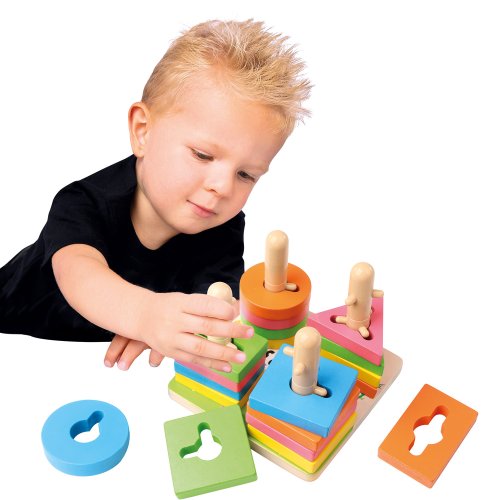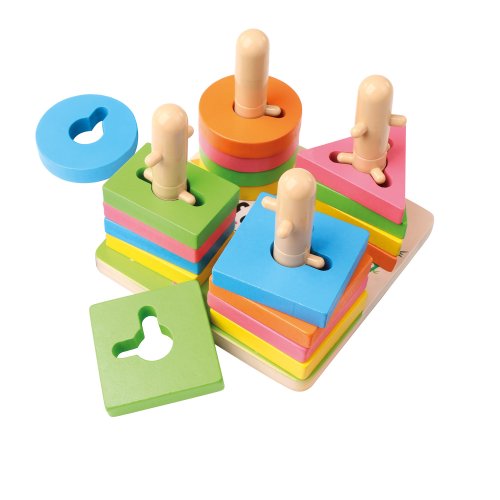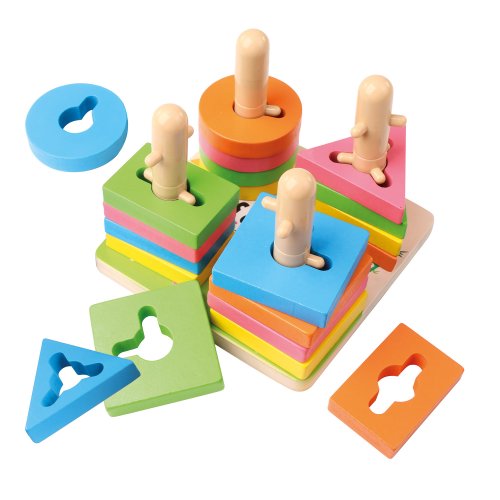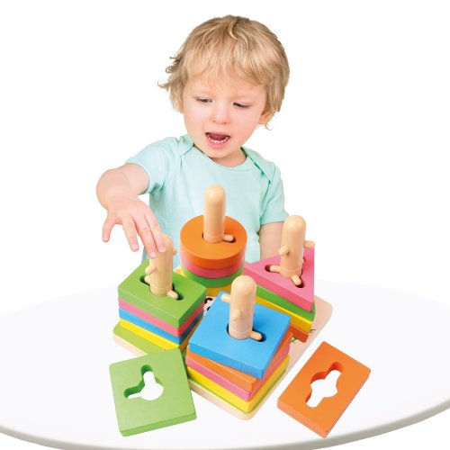 Různorodé typy kostek těchto dětských hraček lze kreativně skládat na sebe a účinně tak rozvíjet představivost vašeho dítěte. Design sloupců a otvorů je ideální pro hraní párové hry. Rozvojové hračky s krásnou barvou upoutají pozornost dětí, které si s touto hračkou užijí zábavu. Pomohou dětem při hře rozpoznávat barvy a tvary a zároveň procvičí jejich prostorové pojetí a koordinaci ruky a oka. Věk: od 3 let, rozměry výrobku: 15x11,5x15 cm, počet dílů: 21 ks, materiál: dřevo.