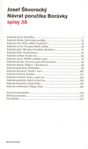Poslední příběh stále smutného detektiva se tentokrát odehrává v autorově torontském působišti, kam se Borůvkovi podařilo uprchnout z československého vězení. Ani zde se mu však nepodaří osvobodit se od českého prostředí ani od své někdejší profese. Vypravěč příběhu, Kanaďan Neil, se kromě pátrání po vrahovi své sestry pokouší zorientovat v exotickém prostředí slovanské emigrantské komunity, která si s sebou z domova do Kanady přinesla všechny své historické i osobní problémy a animozity.