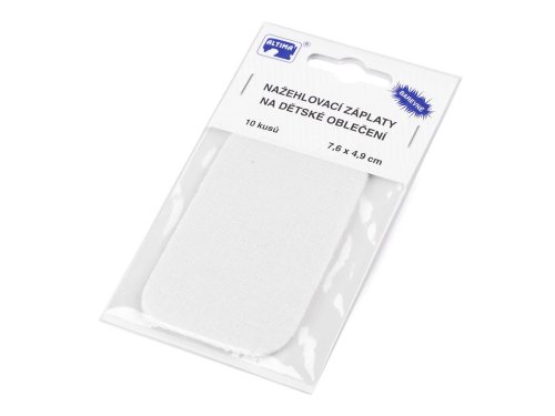 Velice kvalitní záplaty od českého dodavatele mají obdélníkový tvar, jsou vyrobené z bavlny. Lepící vrstvu tvoří polyetylenové lepidlo. Použití: Záplaty můžete použít jako ozdobu na oděvy (košile, bundy, saka apod.). Využijete je i klasicky při záplatování bund, riflí, kalhot a dalšího oblečení. Jeden sáček obsahuje 10 ks nažehlovacích záplat.