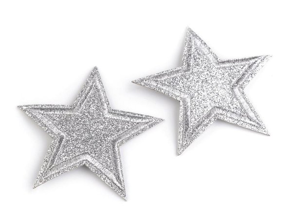 Nažehlovačka hvězda s glitry - stříbrná, 10 ks