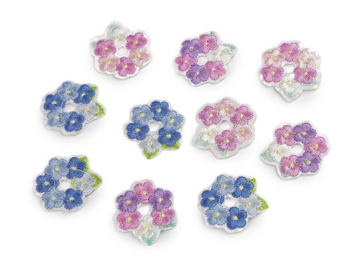 Nažehlovačka květinového věnečku je velice půvabná, má kvalitní celoplošné vyšívání. Jemně se leskne. Potěší nejen děti, ale i dospělé. Vynikne jak na oblečení, tak na doplňcích jako jsou tašky, klobouky, ubrusy, prostírání, polštáře apod.