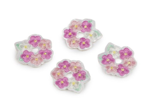 Nažehlovačka květinového věnečku je velice půvabná, má kvalitní celoplošné vyšívání. Jemně se leskne. Potěší nejen děti, ale i dospělé. Vynikne jak na oblečení, tak na doplňcích jako jsou tašky, klobouky, ubrusy, prostírání, polštáře apod.