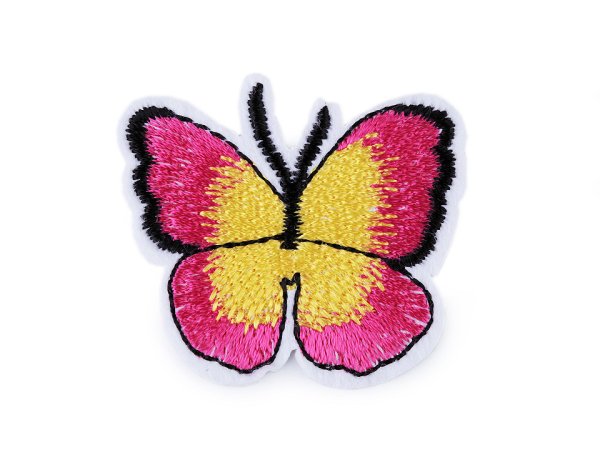 Nažehlovačka motýla má kvalitní provedení. Je celoplošně vyšívaná a jemně se leskne. Vynikne na oblečení, módních doplňcích i na bytových dekoracích.