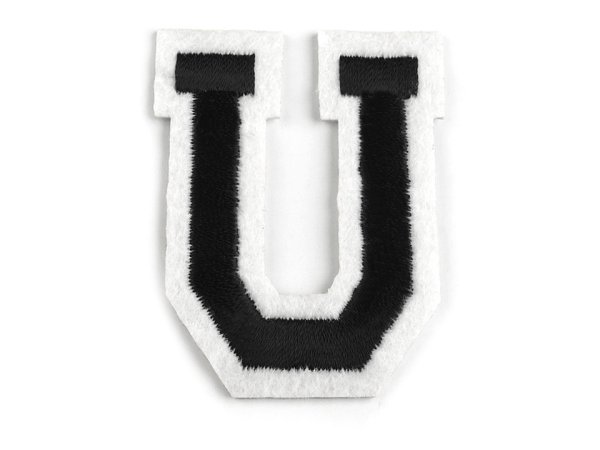Díky nažehlovačkám s písmeny si můžete sestavit svůj vlastní originální nápis. [Písmeno má černou středovou část vyšívanou.] [Nažehlovačkami můžete oživit oblečení. Hodí se na rifle, riflové bundy, kabáty, tenisky, tašky. Využijete je také na zakrytí případných nedostatků na nich.]