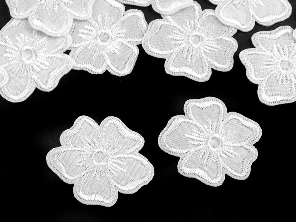 Nažehlovačka vyšívaný květ - bílá (10 ks)