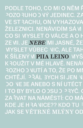 Píše se rok 2058, svět zdevastovaly přírodní katastrofy. Obyvatelům Helsinek, kde po občanské válce vládne totalitní režim, se už dlouho nerodí děti, život postrádá smysl. Jedinou útěchu poskytuje virtuální realita. Přístup do Nebe je ale jen pro ty, kteří si to můžou dovolit. Mladý vědec Akseli dostane od svého nadřízeného na univerzitě výzkumný úkol. Rázem tak v Nebi může trávit daleko více času. Už už se zdá, že se bude oddávat jen jeho opojnému účinku, pak tu ale potká ženu a zatouží po setkání s ní i v reálném světě. Finská spisovatelka Piia Leino vystřihla napínavou dystopickou vizi, v níž se na pozadí milostného příběhu zabývá sílícím vlivem technologií na lidský život, vzrůstající sociální nerovností, nebezpečím nacionalstických ideologií a dalšími palčivými tématy současného světa. Román Nebe sklízí globální úspěch, kniha byla přeložena do téměř dvacítky jazyků.