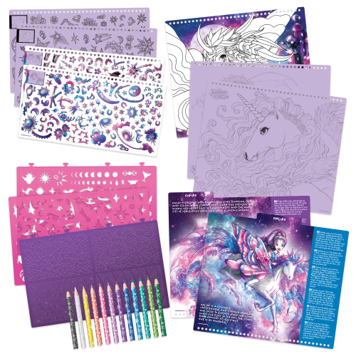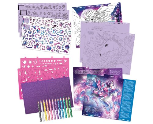 Vytvářejte magické a úžasné kresby fantasy koní, kteří budou jako stvořeni ke skotačení mezi hvězdami. Využijte množství různých nálepek, šablon a technik, které vám pomohou vytvořit koně vašich snů. Obsah balení:250 nálepek, 12 pastelek, 80 šablon, 35 listů s obrázky, 4 plastové formičky ke vzorování, 12 kreslících technik s návodem Doporučený věk: 7+