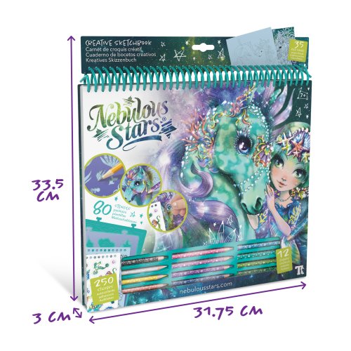 Užijte si spoustu tvořivé zábavy, kterou nabízí kreativní sada Nebulous. Tento sketchbook inspirovaný světem dívky a její láskou ke zvířatům obsahuje vše, co potřebujete k tvoření. Stačí postupovat podle návodu na obalu a obkreslováním, vybarvováním, kreslením a nalepováním budete objevovat taje tohoto mystického světa. Obsah balení: 250 nálepek, 12 pastelek, 80 šablon, 35 listů s obrázky, 4 plastové formičky ke vzorování, 12 kreslících technik s návodem Doporučený věk: od 7 let