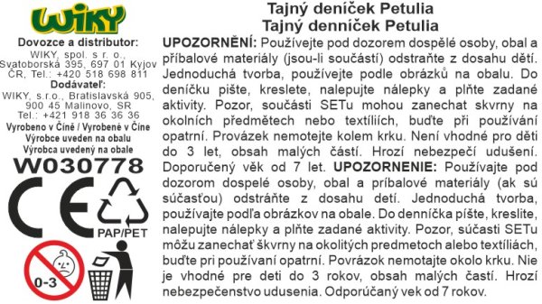 Nebulous Star Tajný deníček Petulia. 6ti barevné pero, korálky, přívěsky, plstěné květiny, provázek, diář obsahuje 200 stran, Petuliin kompletní příběh, 44 stránek s aktivitami, stránka s nálepkami, 150 stránek s linkami.