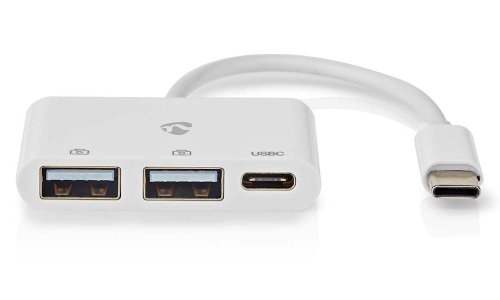USB hub pro počítače, notebooky či tablety s rozhraním USB-C nabízí rozšíření o dva USB 2.0 porty a USB-C port.
