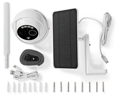 Součástí balení je držák na stěnu/strop, montážní základna, popruh, externí anténa (pro zvýšení signálu 4G), solární panel, kabel USB a pinzeta.