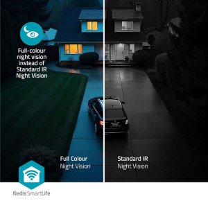 Připojení pomocí Wi-Fi je rychlé, jednoduché a umožní vám využívat chytré ovládání pomocí mobilní aplikace Nedis SmartLife. S její pomocí můžete přijímat notifikace, kontrolovat prostor skrze živý náhled nebo obousměrně komunikovat přes mikrofon a reproduktor. Potěší také kompatibilita s hlasovými asistenty Amazon Alexa a Google Assistant. Konstrukce se stupněm krytí IP65 zajišťuje ochranu proti dešti nebo prachu a kamera Nedis WIFICO22CWT je funkční za každého počasí.