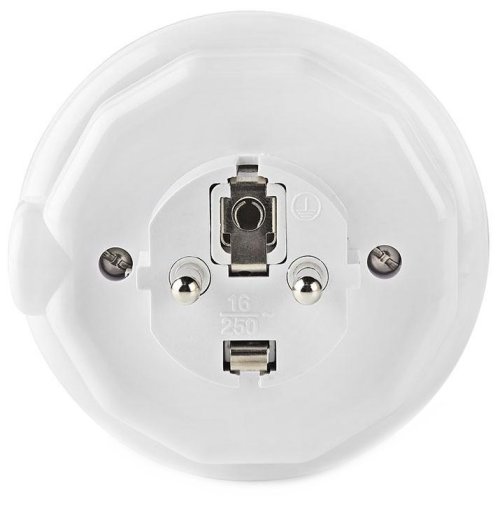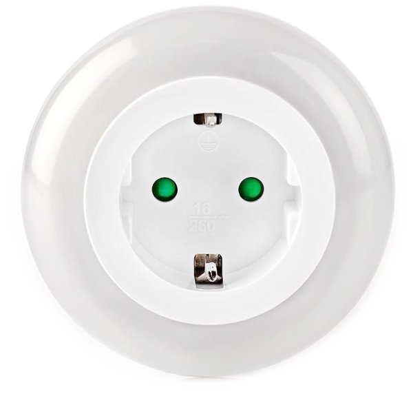 Kombinace zásuvky a noční svítilny v jednom zařízení. Zásuvka je síťově napájena (220–240 V AC) a podporuje zátěž až 3680 W. S kompaktním průměrem 82 mm a bílou barvou se snadno začlení do prostoru. LED osvětlení se díky integrovanému senzoru automaticky aktivuje v závislosti na úrovni okolního světla. Pomocí dotykového ovládání můžete snadno měnit barvu světla na bílou, modrou nebo zelenou.