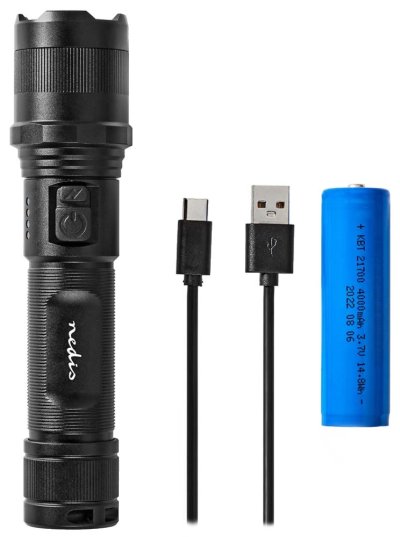 Výkonná LED svítilna Nedis LTRR10WBK se třemi stupni intenzity světla. Robustní konstrukce z hliníkové slitiny zajišťuje pevnou a odolnost při každodenním používání. Pro napájení baterie slouží port USB-C, přičemž míru vybití signalizuje praktická modra LED dioda. Maximální svítivost je 1000 lumenů s dosahem až 110 metrů. Svítilna Nedis LTRR10WBK je ideální do stanu, při kempování v lese, rybaření, na večerní procházce se psem, pobytu v lese, na chatě nebo chalupě. Pro použití ve venkovním prostření a při outdoorových aktivitách splňuje stupeň krytí IPX4, díky čemuž je svítilna chráněna proti stříkající vodě.
