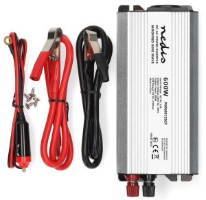 Měnič napětí s výkonem 600 W a modifikovanou sinusoidou je ideální řešení pro napájení nejrůznějších elektrických spotřebičů určených pro síťové napájení, jako například notebooků, chladicích boxů apod. Vstupní napětí měniče je 12 V DC, výstupní napětí 230 V AC a účinnost 85 %. Takto můžete v nákladních automobilech, lodích či obytných vozech používat domácí spotřebiče, aniž byste museli investovat do speciálního vybavení pracujícího s napětím 12 V. Není vhodný pro napájení elektroniky citlivé na tvar vstupního napětí. Měnič je vybaven napájecí zásuvkou se zemnicím kolíkem (typ E) a jedním USB portem s výstupním napětím 5 V DC. Samozřejmostí je ochrana proti přehřátí, přetížení, zkratu, přepólování (pojistka), podpětí a přepětí. Součástí balení jsou kabely pro zapojení do automobilové zásuvky a bateriovými svorkami pro připojení k baterii.