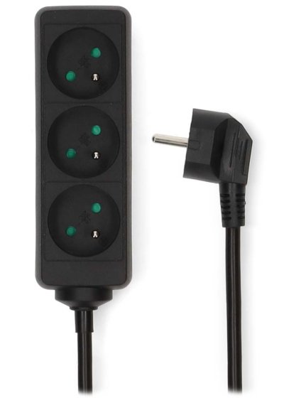 Tato prodlužovací zásuvka je vhodná k rozdělení zásuvky do tří napájecích bodů. Je vybavena 1,5 m dlouhým kabelem k napájení elektrických zařízení kdekoli doma nebo v kanceláři. Díky kontaktnímu úhlu 45° je tato napájecí lišta vhodná i pro úhlové zástrčky.