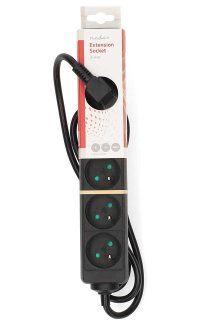 Tato prodlužovací zásuvka je vhodná k rozdělení zásuvky do šesti napájecích bodů. Je vybavena 1,5 m dlouhým kabelem k napájení elektrických zařízení kdekoli doma nebo v kanceláři. Díky kontaktnímu úhlu 45° je tato napájecí lišta vhodná i pro úhlové zástrčky.