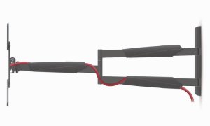 Držák je ideální pro rohovou instalaci i standardní montáž na zeď. Minimální vzdálenost od zdi pouhých 7 cm při složení a maximální výsuv 102 cm poskytuje flexibilitu pro optimální sledování z jakéhokoli úhlu. Integrované vedení kabelů udržuje instalaci čistou a organizovanou.