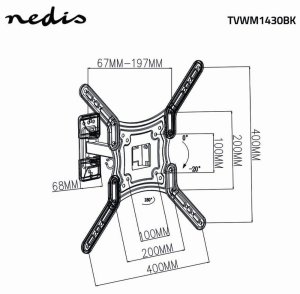 Robustní nástěnný držák umožňuje připevnění televizorů o hmotnosti až 30 kg s možností přesného nastavení polohy pro optimální sledování. Díky dvěma otočným bodům lze televizor otáčet až o 180° a nastavit vzdálenost od zdi v rozsahu 67–197 mm.