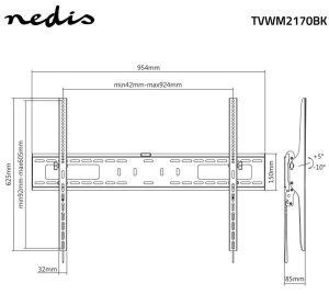 Držák nabízí naklápěcí funkci s rozsahem 5° pro optimální nastavení úhlu sledování a minimální vzdálenost od zdi 85 mm. Instalace je zjednodušena díky indikátoru vyrovnání a rychloupínacím pojistkám pro snadné zavěšení a sejmutí televizoru.