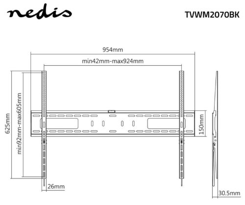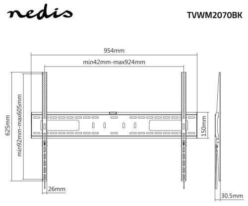 Tento robustní držák z kvalitního kovu a oceli je navržen pro bezpečné uchycení největších dostupných televizorů na trhu. Díky pevné konstrukci umístí televizor pouze 30,5 mm od zdi, což zajišťuje elegantní a minimalistický vzhled. Držák je kompatibilní s širokým spektrem VESA standardů od nejmenších 200 × 200 mm až po největší 900 × 600 mm.