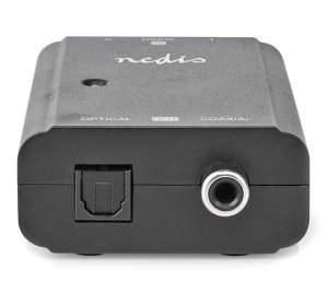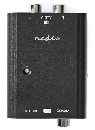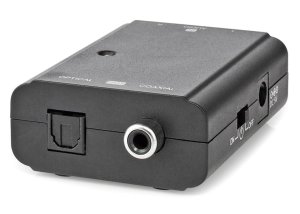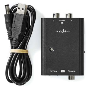 Tento digitální audio převodník převádí analogový stereofonní zvukový signál na digitální Toslink nebo RCA zvukový signál na vstupním portu přijímače nebo zesilovače. Dodává se s nabíjecím kabelem DC-USB (adaptér není součástí balení).