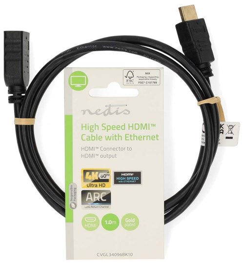 Nedis HDMI (M) na HDMI (F) s Ethernetem 1 m