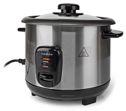 Rýžovar Nedis KARC110AL z nerezové oceli vám umožní za krátkou dobu připravit lahodnou rýži k obědu, večeři, na sushi a k dalším hlavním jídlům. Díky funkci automatického vypnutí nebo udržení teploty bude rýže krásně měkká a nerozvařená. Rýžovar Nedis má objem jeden litr a umožní připravit až 5 porcí rýže najednou. Díky tomu je vhodný pro přípravu jídla pro celou rodinu. Skleněné víko umožní sledovat celý proces vaření a díky nepřilnavému povrchu se nic rýže nepřichytí. Odnímatelná nádoba vám usnadní servírování a snadno se čistí.