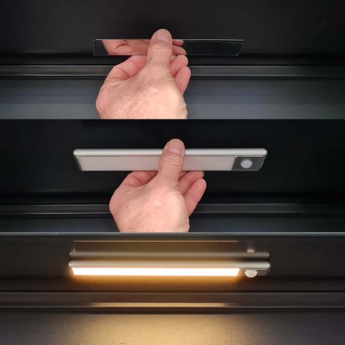 Dobíjecí LED svítidlo s pohybovým senzorem je praktickým řešením pro snadné rozjasnění tmavých prostor. Světlo se automaticky zapne, když je detekován pohyb do 5 metrů, a po několika sekundách se znovu vypne, pokud není detekována žádná aktivita. Pro nepřetržité svícení lze použít ruční vypínač. Navíc není třeba složitého zapojování nebo potíží s instalací, svítidlo lze jednoduše připevnit pomocí dodaných magnetických proužků nebo oboustranné pásky. Je tak ideální pro použití do skříně, na schodiště či ve sklepě. Napájení je realizováno z integrované baterie, kterou lze dobíjet pomocí USB-C portu.