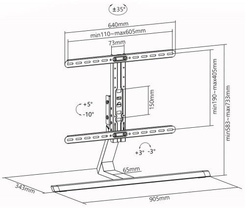 Výškově nastavitelný podlahový stojan je vhodný pro televizory s úhlopříčkou 37" až 75". Nabízí 5 různých nastavení výšky, které vám umožní dosáhnout optimálního umístění. Po nastavení výšky lze snadno nastavit správný sledovací úhel pomocí naklonění. Základna je vybavena silikonovými podložkami a společně s dodávaným bezpečnostním popruhem zajistí potřebnou stabilitu a minimalizuje riziko převrhnutí. Potěší také vestavěný systém správy kabeláže. Maximální zatížení stojanu je 40 kg.