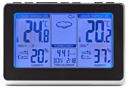 Vnitřní a Venkovní | Včetně bezdrátového senzoru počasí | Předpověď počasí | Zobrazením času | LCD Displej | Funkce budíku