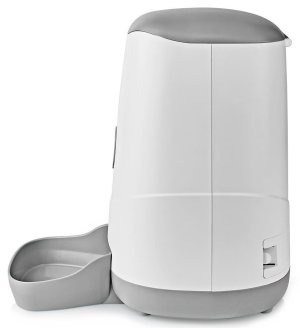 Odnímatelná nádoba na krmivo pojme až 3.7 litru suchého jídla. Pomocí LED kontrolky nebo upozornění z telefonu máte informaci o tom, že je třeba kontejner znovu naplnit. Další senzor kontroluje, zda jídlo skutečně vyšlo z dávkovače a nedošlo k zaseknutí nebo převrácení. Plán krmení je uložen přímo v zařízení, takže i bez připojení k Wi-Fi dostane zvířátko jídlo ve stanovenou dobu.