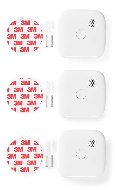 V balení najdete 3 kouřové detektory s předinstalovanými bateriemi CR123A, samolepicí pásky, šrouby pro montáž a podrobný návod k použití. Instalace je rychlá a jednoduchá bez potřeby odborníka.